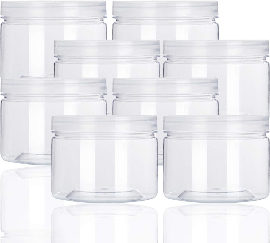 10oz Clear Plastic Storage Jars Containers,8 Pack Refillable Wide-Mouth Plastic Slime Storage Containers for Beauty Products,Kitchen & Household Storage - BPA Free