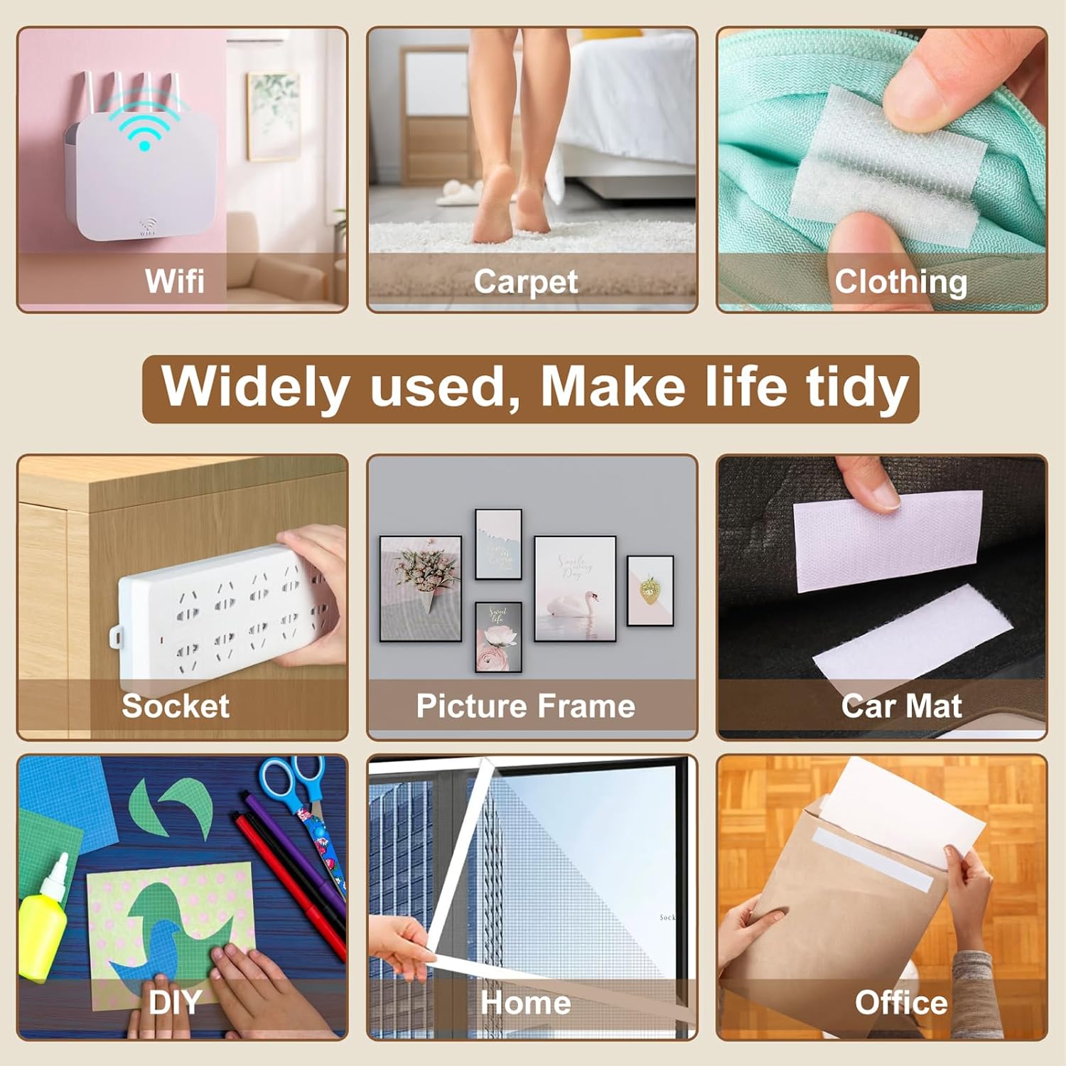 - 【Super Adhesion Hook Loop Tape】These hook and loop adhesive tape fastener makes the ultimate organization tool for mounting, hanging, storing, or securing items indoors or outdoors, and can be adhered to most surface in houses and garages.