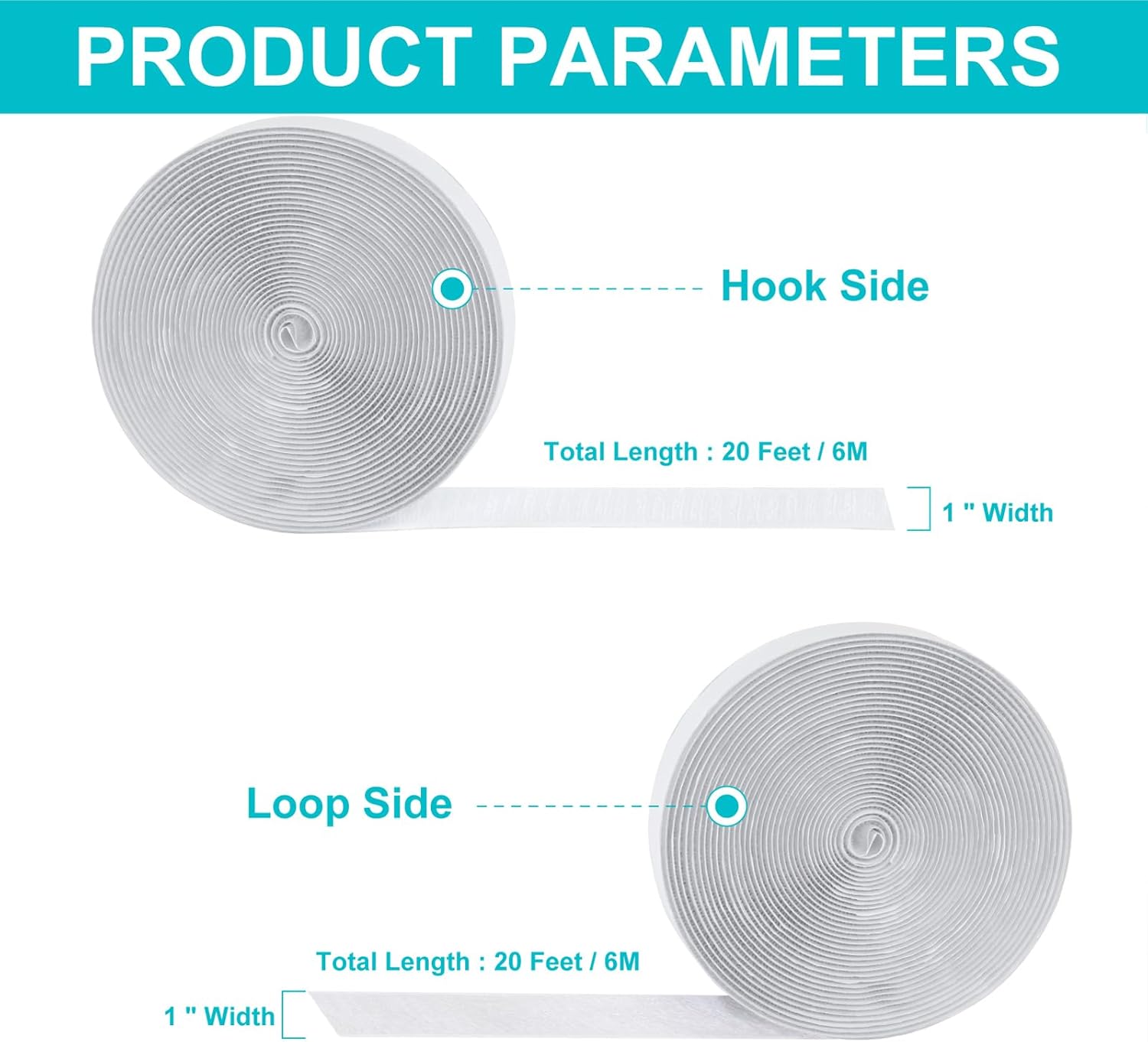 20Ft*1 inch Hook and Loop Tape Roll with Heavy Duty Adhesive - Fastener Mounting Tapes Strips with Sticky Back for Sewing, Crafting,DIY- Indoor or Outdoor Use