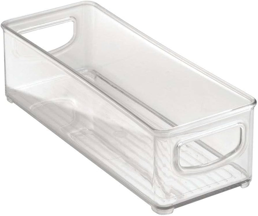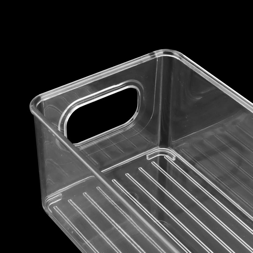 Clear, stackable storage bins with handles for easy access. Ideal for fridge, freezer, pantry, cabinets, and bathroom. Organize any space with ease and style.