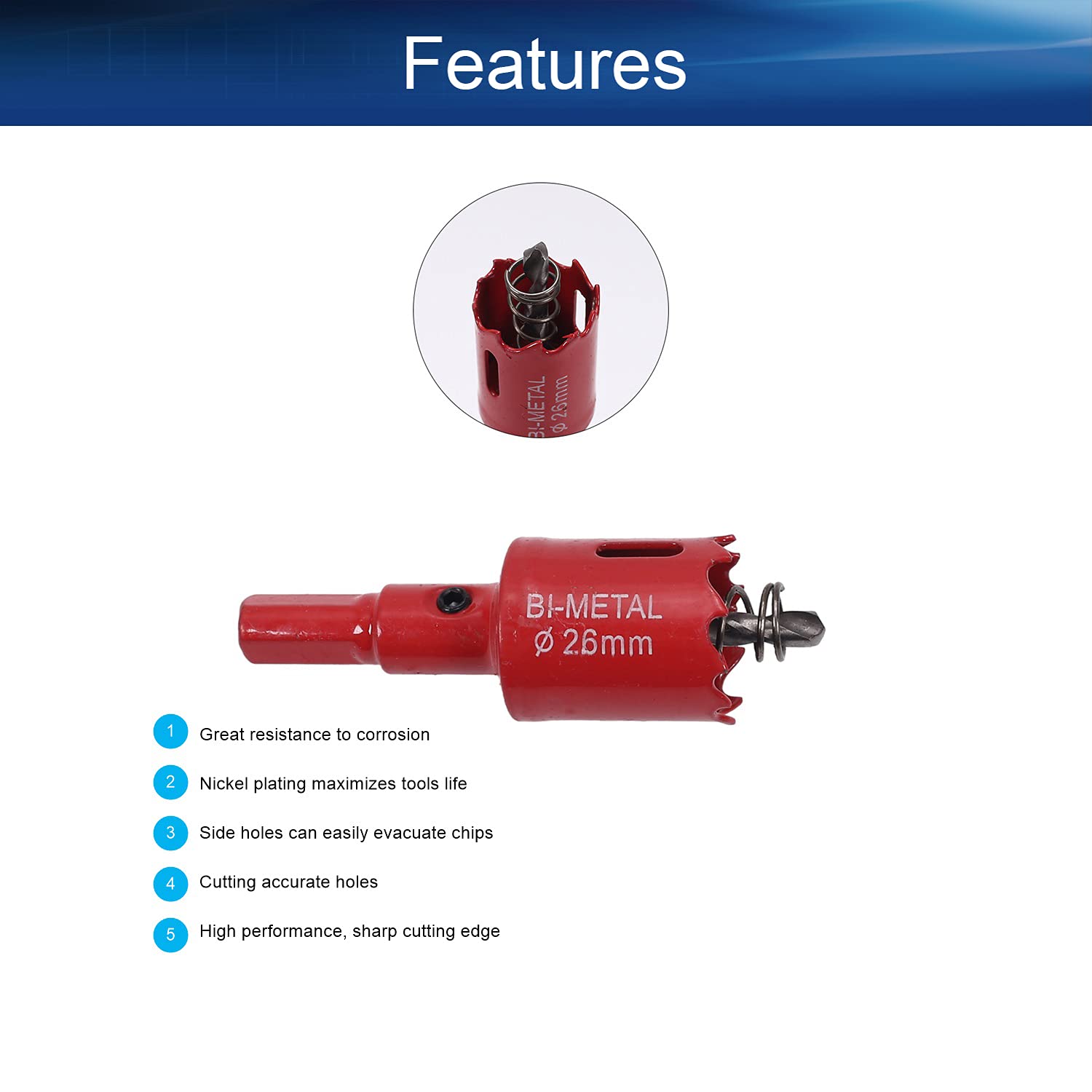 - 【CONSTRUCTION GRADE】- Cutting Diameter: 26mm/1.01"; Opening Depth: 25mm/0.98"; Handle Diameter: 10mm/0.39"; Hole Saw is made of HSS M42 & high speed steel, impact resistance, wear resistance. With higher hardness, higher toughness and stronger resistance; Well made, sharp, hard, lasting. Comes with drill bit hardware.