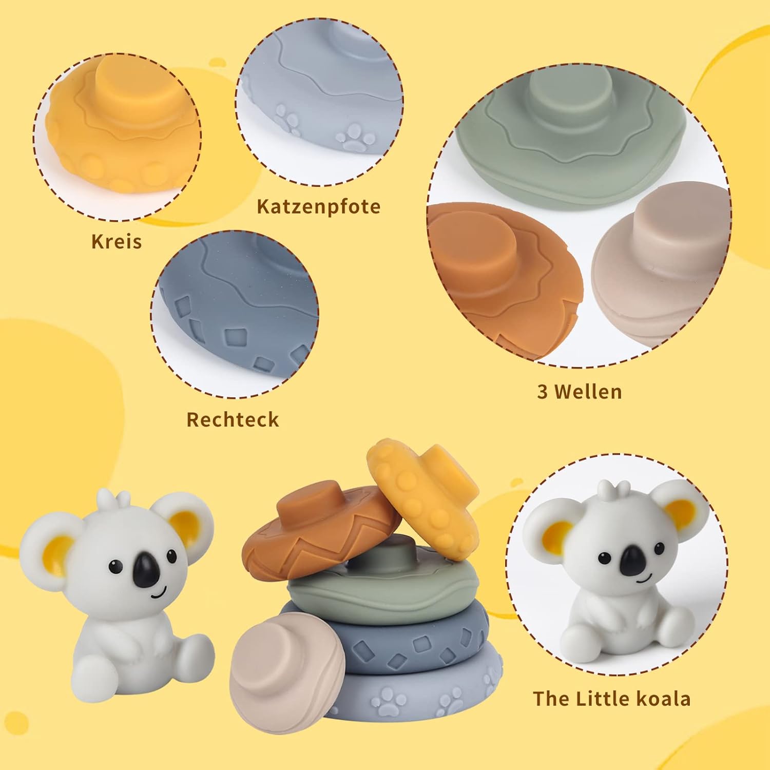 Baby Stacking Toy Baby Teething Toy Koala Baby Stacking Ring Toys Nesting Circle Toy Silicone Baby Toys Early Educational Christmas Toy Gifts for 6 12 18...