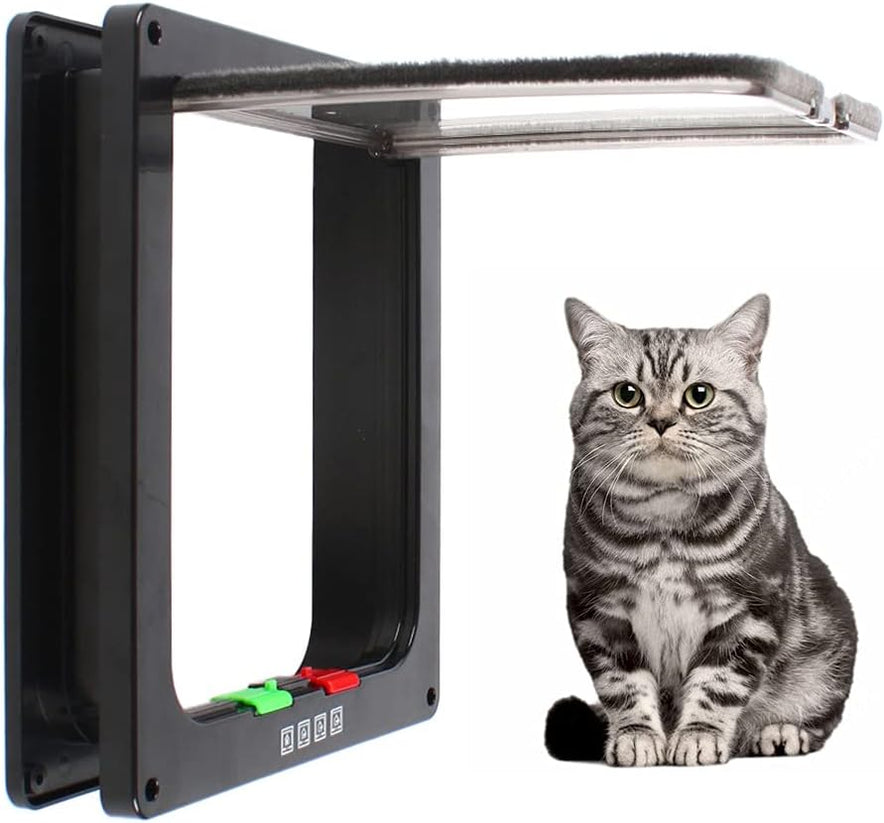 - DIRECTION CONTROL WITH LOCK The cat door has a lock that allows you to control the direction of entry and exit. You can set whether your cat can only go inwards, only outwards or in both directions.