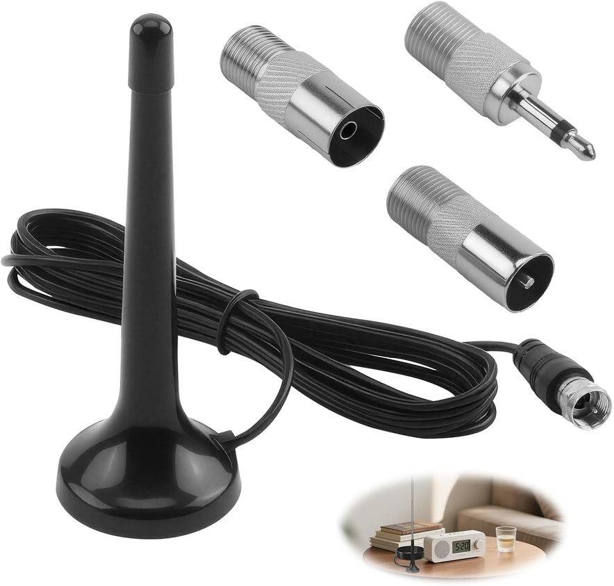 Supplied with three adapters (3.5mm jack, TV socket and TV plug), this antenna is compatible with a variety of devices such as Hi-Fi systems, portable radios, DAB receivers and amplifiers. Installation is simple: simply plug and orient the antenna without any tools.