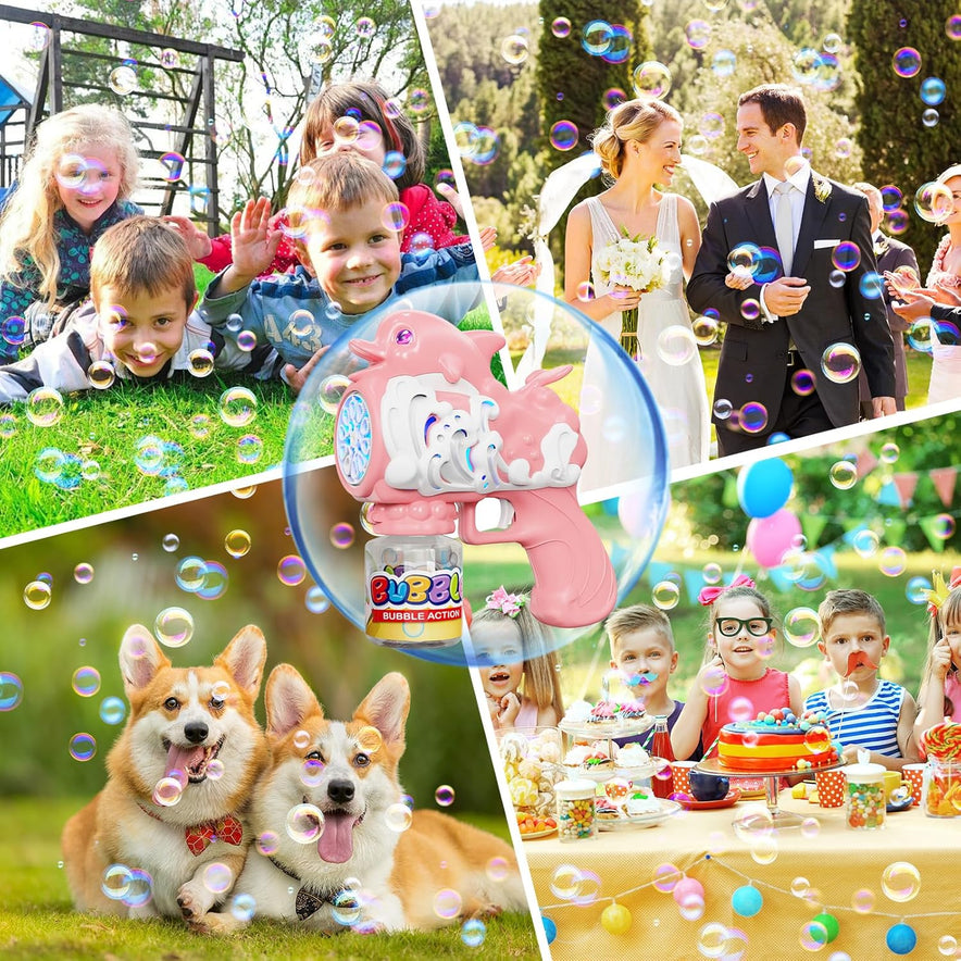 designed to create a spectacular bubble storm in seconds! This upgraded bubble machine features 57 high-output bubble holes and an auto water-absorbing system, allowing kids to enjoy non-stop bubble action without constantly dipping the gun into solution. Simply fill, press, and watch thousands of bubbles fill the air instantly.