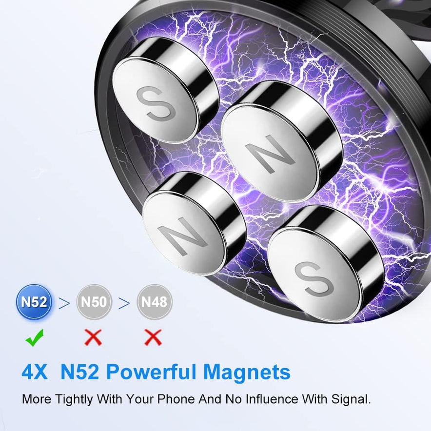 - SUPER STRONG MAGNET - Our mobile car mount uses the N52 magnet, which is currently the strongest magnet on the market. In combination with the metal plate on the packaging box, the car mobile phone holder can hold your mobile phone on bumpy roads.