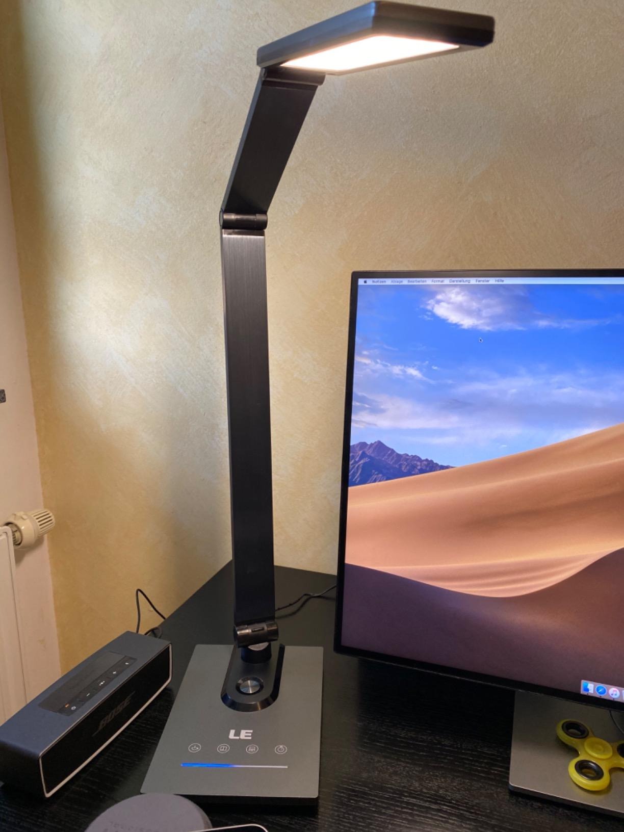 - Rotating and flexible light desk lamp with multi-angle adjustable arms and heads. The base of the stand can be rotated and bent 90° and the head of the lamp is flexible to 180°, very practical for illuminating the office. You can turn the lamp in any direction by 180 degrees. Power in 19 W (whose LED lamp is 9 W USB output at 10 W)