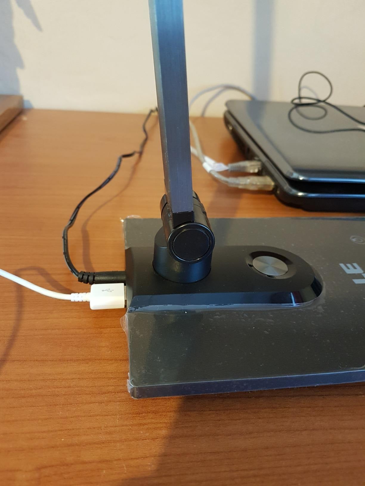 - Extra USB Port A small 5V/1A USB output port on the back of the lamp to charge your various devices patible with most iPad smartphones and e-readers USB Packaging concludes a power adapter and a small cloth Go enjoy a smart lamp for your desk