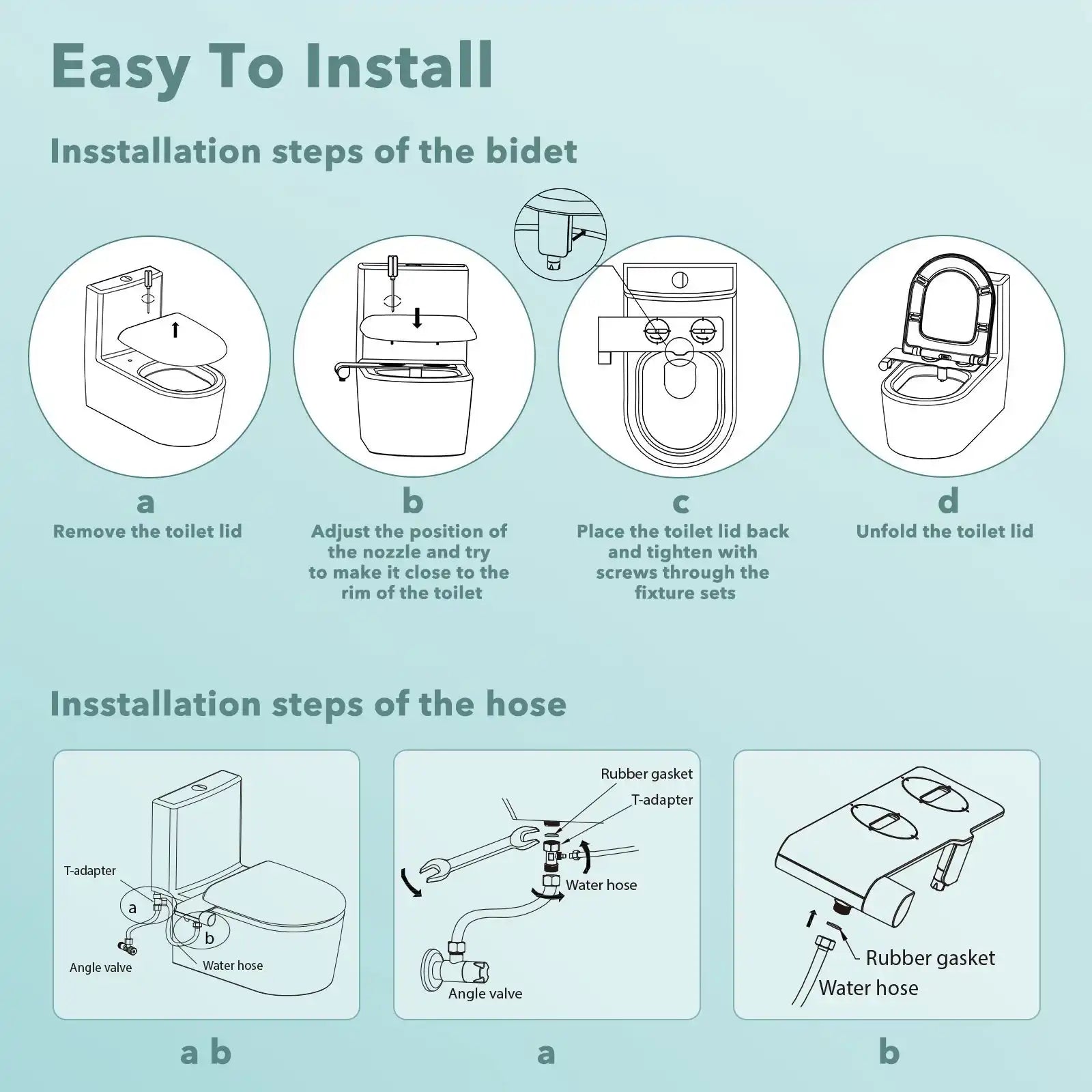 【Additional Wrench For Easy Installation】: a wrench is included in the package for bidet installation which will help to assemble all the parts within 10 minutes, requiring no plumping skills. Sealing gasket is included in the accessories, no need to use PTFE tape.