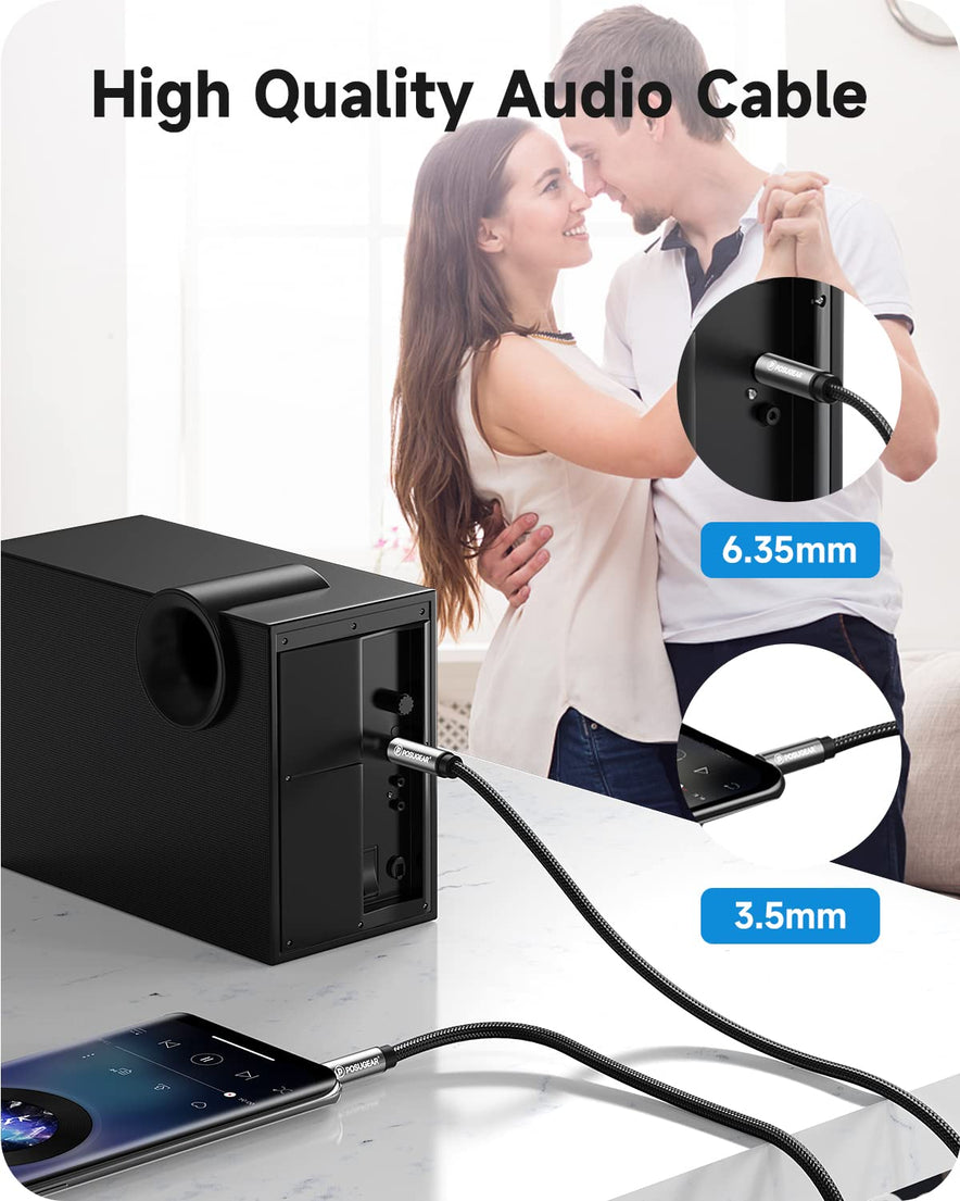- 6.35 mm jack plug to 3.5 mm can be easily connected to all your iPod, laptop, mobile phone or similar device with a mixer, home cinema devices speakers. It can be compatible with all digital devices with 3.5 mm standard connection or 6.35 mm audio interface.