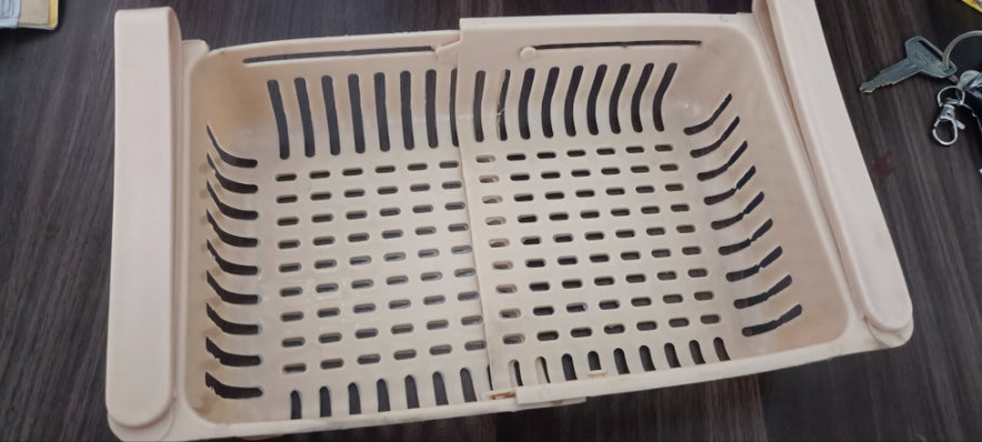 Maximize fridge space with this adjustable, expandable plastic storage basket. Unbreakable design keeps food organized and fresh. Ideal space saver for any refrigerator.