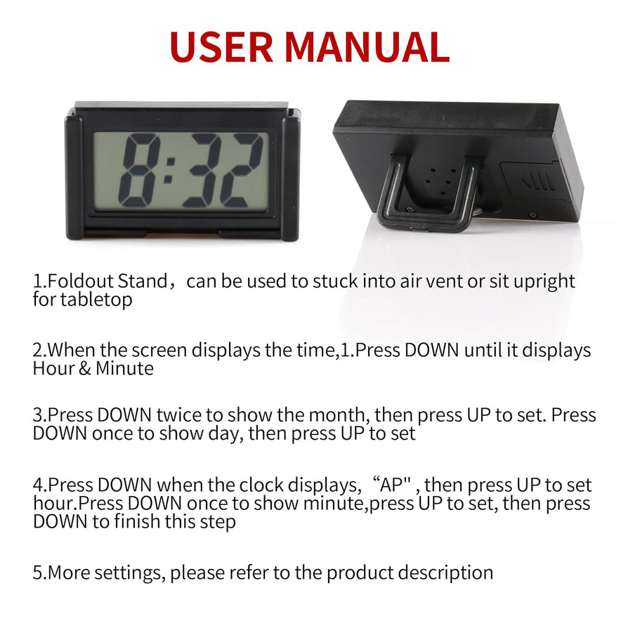 - [APPLICABLE OCCASIONS]: Digital car clock can be applied to a variety of occasions, it is small, light weight, portable, not only can be used in the car, but also in the office, kitchen, etc. The double-sided adhesive attached to the back can be pasted to any position you like, bringing you great convenience.