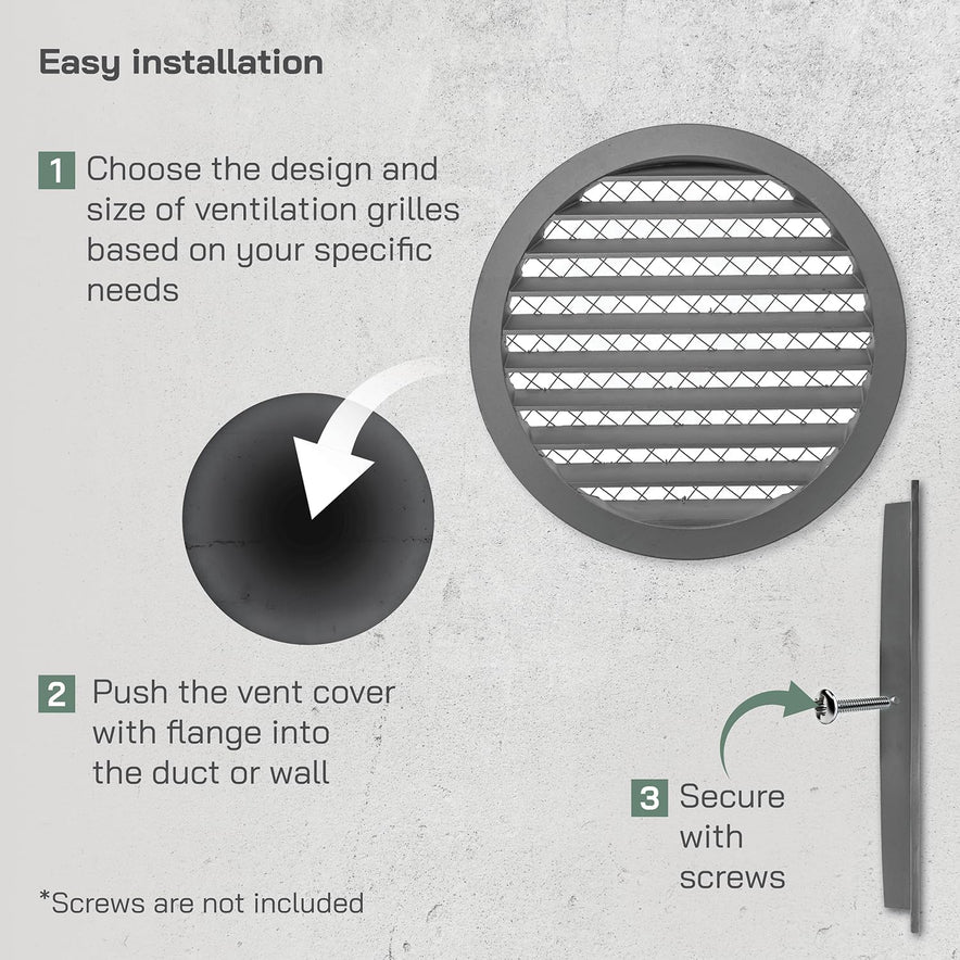 Vent Systems 12” Inch Aluminum Steel Soffit Vent Cover – Round Louvered Air Vent Grille with Built-in Mesh Screen and Flange – Heavy-Duty HVAC Register for...